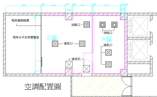 f)來自整個核心區域的排風必須連續經過兩個高效率濾網處理。排風口應遠離實驗室區和進風口。