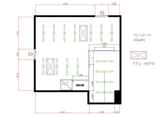 需要完善隔間;進行實驗時需關閉門窗。(如果能裝置UV燈及雙重空氣洗塵門尤佳) |