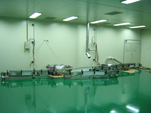 4)地面:潔淨區原水泥地面需經處理後做環氧樹脂EPOXY面層,厚2mm的環氧樹脂自流平或採用PUR無縫專用地板。無塵清潔明亮,易清洗衛生,不積塵顢細菌。